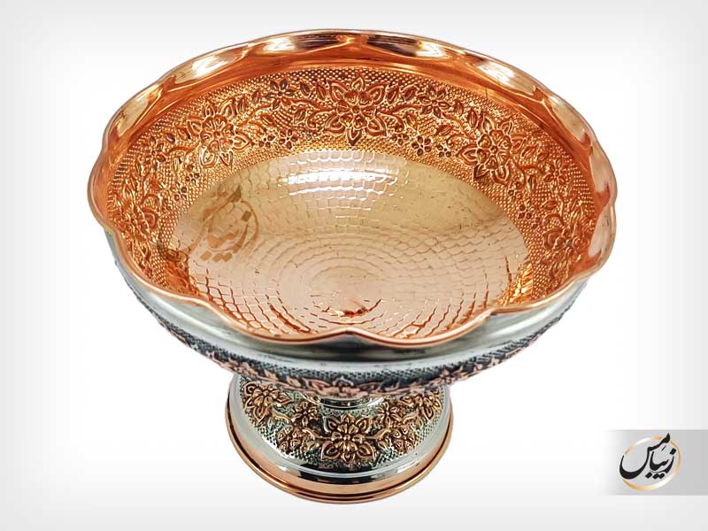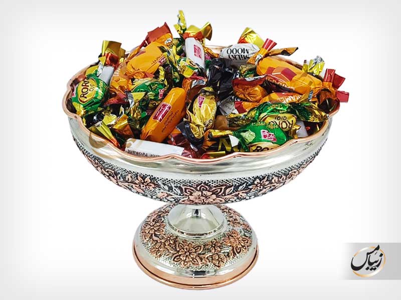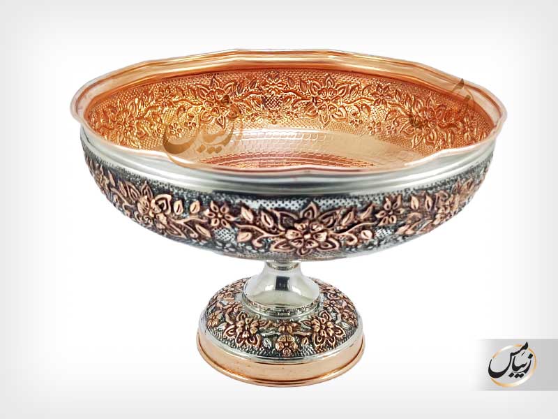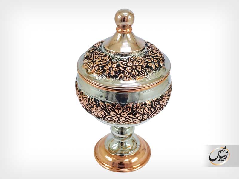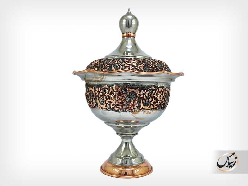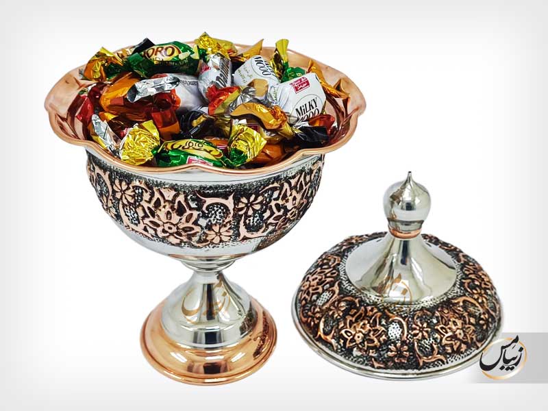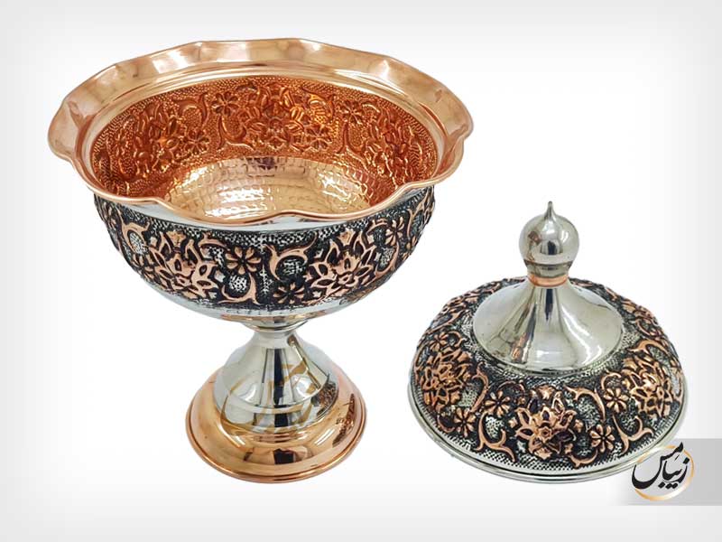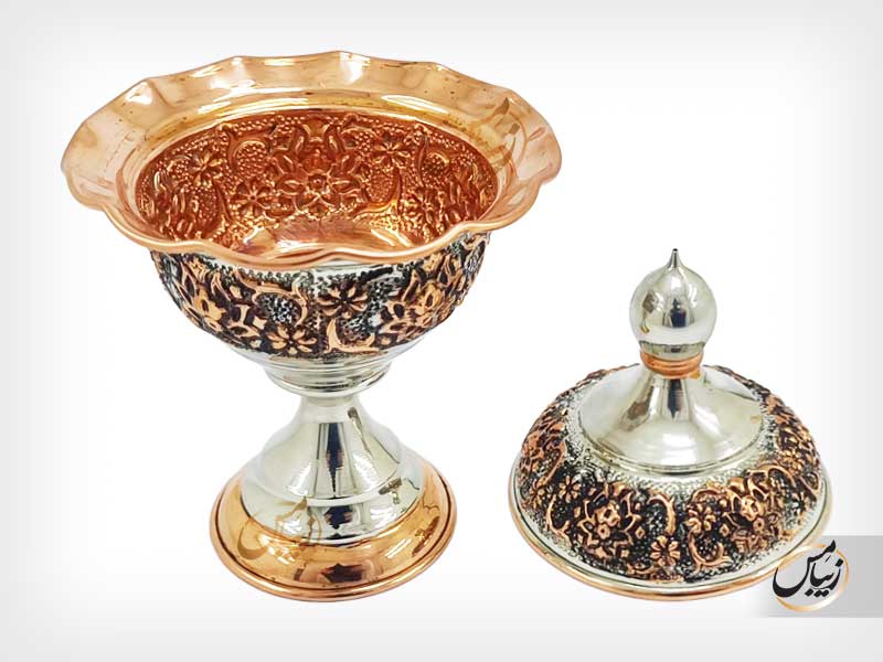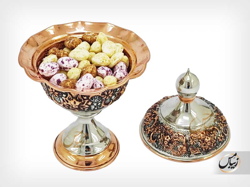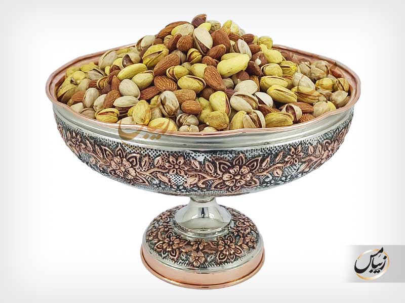 آجیل خوری مسی پایه دار ، سَبک مسفام ، مدل نسترن