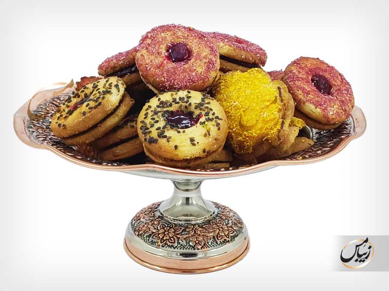 شیرینی خوری مسی پایه دار ، سَبک مسفام ، مدل نسترن